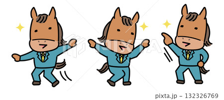 ジャンプするスーツ姿の馬キャラクターのイラスト