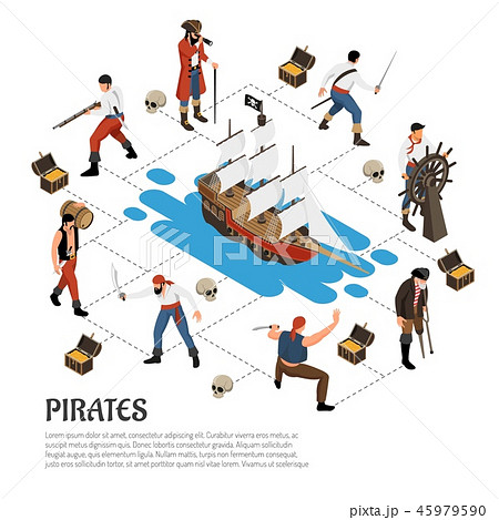 3D pirate symbols, captain's hat with a skull and crossbones, bottle of rum, and compass.