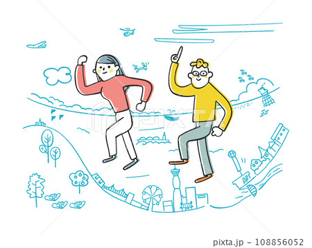 港町を散策する大学生 キャンパスライフ イラスト素材