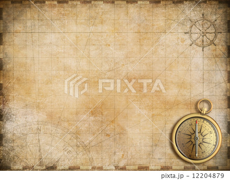 old map with brass compass as exploration and adventure backgrou