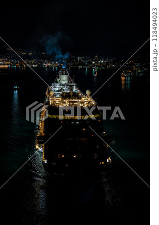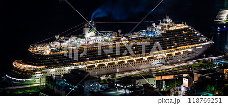 長崎港客船入港(Adora Magic City)鍋冠山からの夜景 望遠 パノラマ【長崎市】