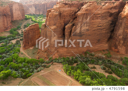 ナバホ国定公園のトレイルから見下ろすアナサジ族の住居跡 ベタキン