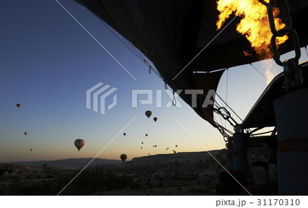 バルーンの火入れ 気球 世界遺産 カッパドキア トルコ アジア