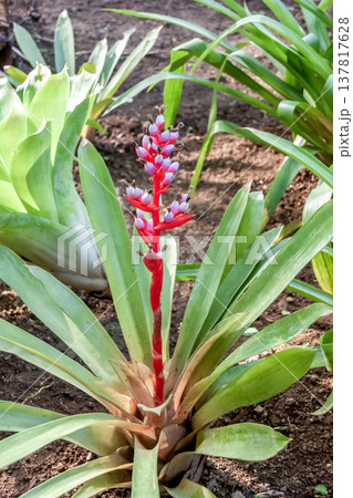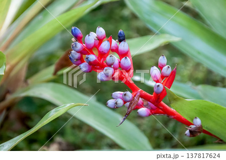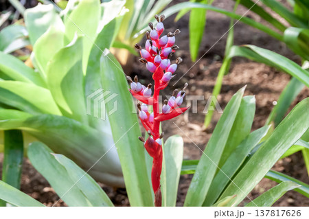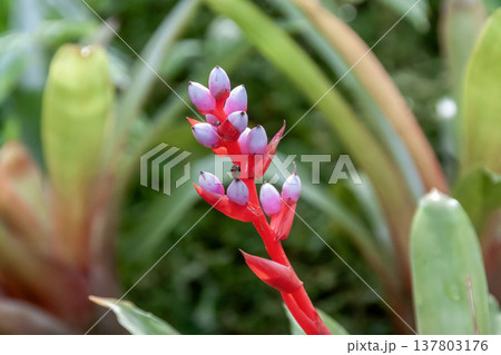 がくは赤紫色でエクメア・バイルバッヒーは着生植物