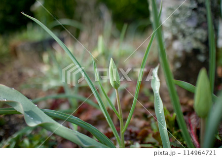 原種チューリップ「クルシアナ・アニカ」の蕾。開花を待つ。