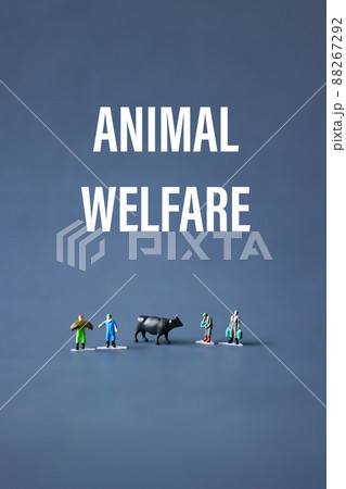 ミニチュア模型を使った動物福祉(アニマルウェルフェア)と畜産業のイメージ図