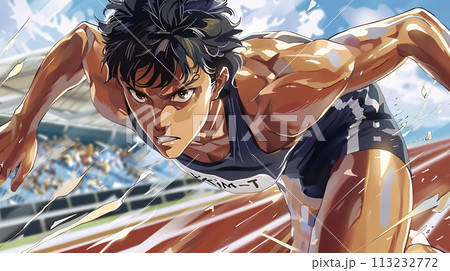 エネルギッシュなアスリートの漫画(アニメ)風イラスト