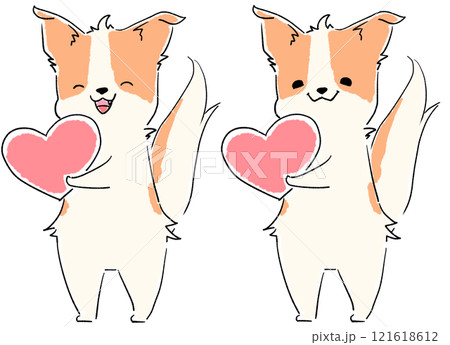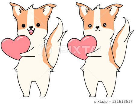 ハートを持っているコーギー(いたずら描き風・表情2種類・茶色A)