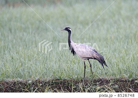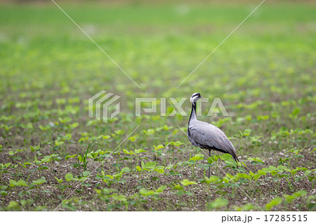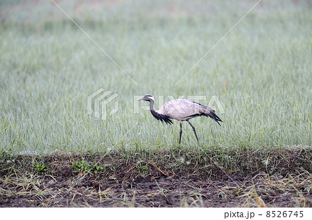 田園に飛来したアネハヅル