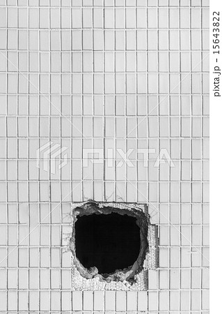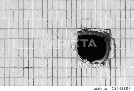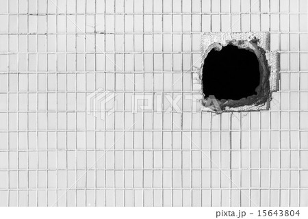 Hole on the old white wall