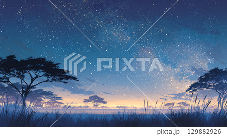 乾いた大地と青空に広がるサバンナ風景|自然の広がりと静けさを感じる絶景素材