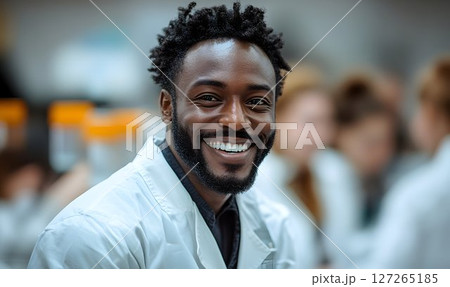 Enthusiastic African American Scientist Smiling in a Modern Laboratory Setting