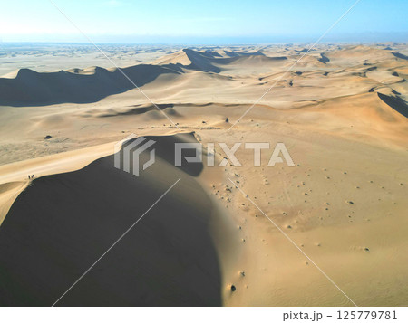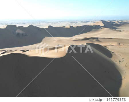 光と影の美しいフォルムを見せるナミブ砂漠の空撮
