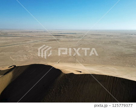 光と影の圧巻の光景のナミブ砂漠の空撮
