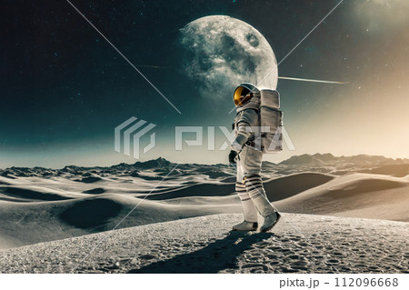 月面を歩く宇宙飛行士のイメージアート