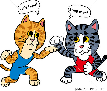 レスリングをする猫