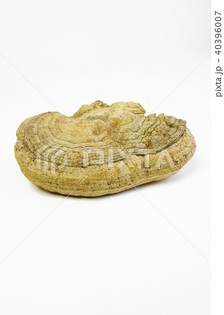 漢方処方用薬・乾燥サルノコシカケ単体・部分アップ白バック縦位置