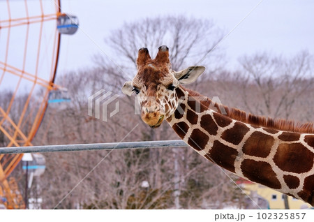 動物園の風景 アミメキリンの顔 北海道旭川市