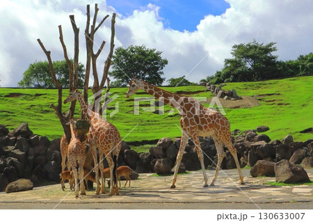 アミメキリン&シカ(アフリカンサファリ・縦構図)