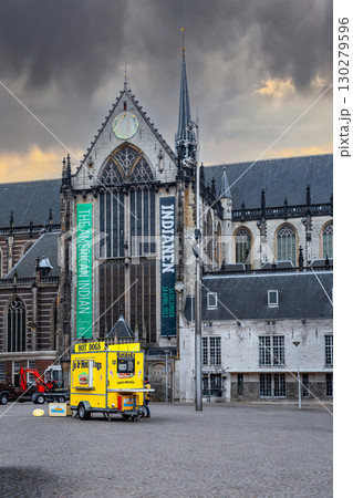 The Dam square in Amsterdam day to night timelapse panorama, The Netherlands.