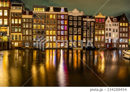 Beautiful night in Amsterdam. illumination of buildings