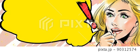 現代アメコミ風ブロンド美女が驚く顔どアップイラストと吹き出し