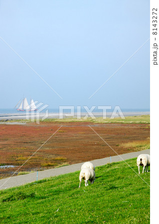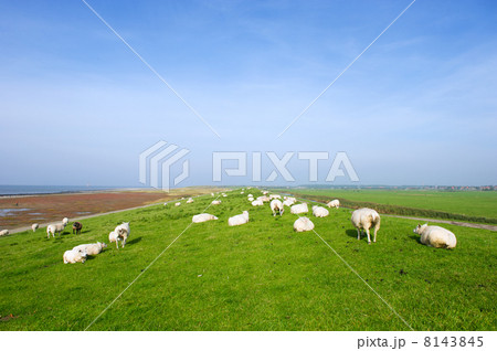 Sheep at the Dutch dike