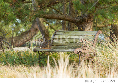Old steel bench in the dutch nature