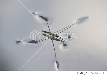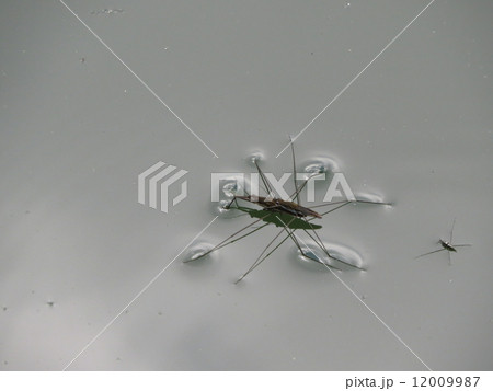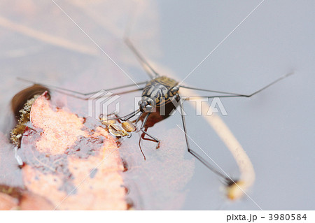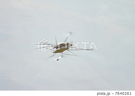水田のアメンボ 昆虫の写真素材