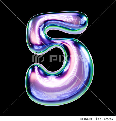Liquid metal font Number 5 FIVE 3D