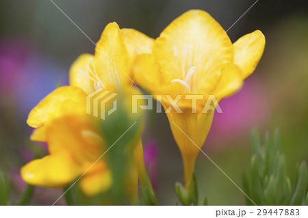 フリージア (赤・黄・紫)【アップ・白背景・コピースペース・シンプル・人物なし】
