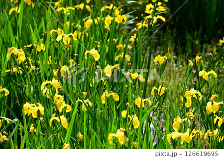 爽やかな初夏の景色 カラフルで華やかな満開の花菖蒲