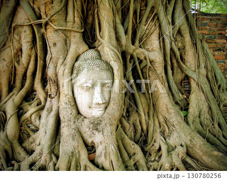 ワット・マハタートの木に覆われた仏像の頭