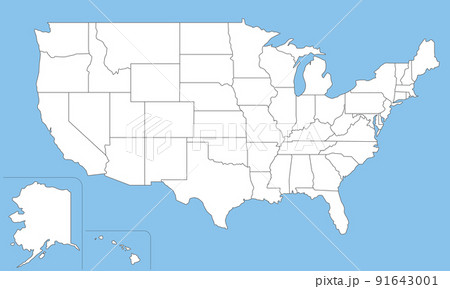 アメリカ合衆国の地図 50州分け 州名入り 北アメリカ