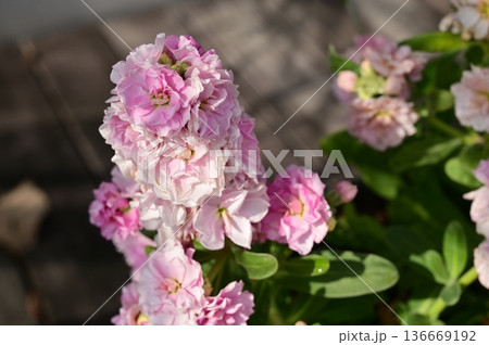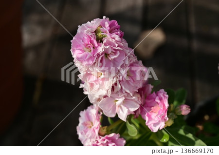ストック(アブラナ科)アラセイトウ属の桃色の花