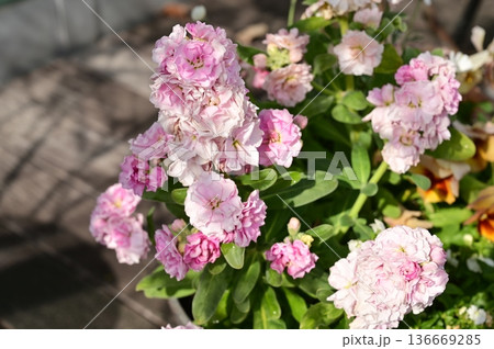 花壇のストックの花の風景