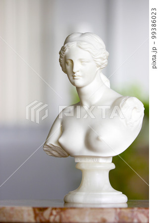 クローズアップで斜俯瞰から見た ミロのヴィーナスの石膏胸像