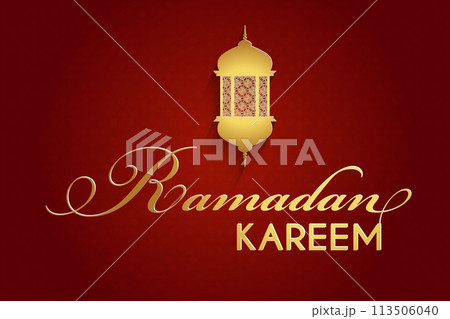 Islamic Festival Ramadan Kareem Greeting with Golden Crescent Moon and Lanterns