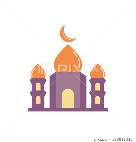Illustration of Golden Islamic Mosque Exterior Building Landscape in Middle East