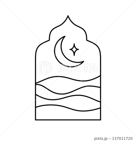 Desert dunes and crescent moon line art icon