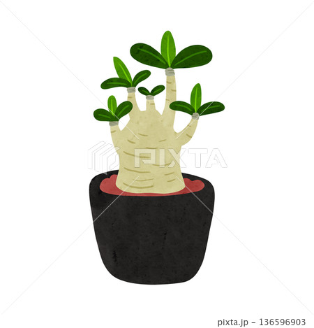 アデニウム・アラビカムの鉢植え 水彩風手描きイラスト