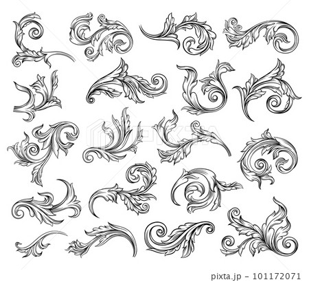 Baroque Scroll as Element of Ornament and Graphic Design with Spirals and Rolling Circle Motif Big Vector Set