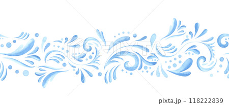 Christmas seamless border, banner with light blue snowflakes for your text in vintage watercolor style. Watercolor hand drawn holiday frosty illustration on white background.