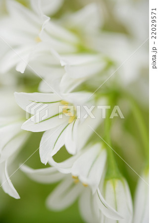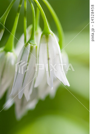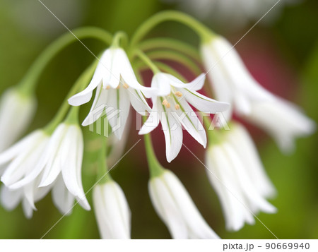 白と緑色のアリウムトリケトラムの花(春、四月)