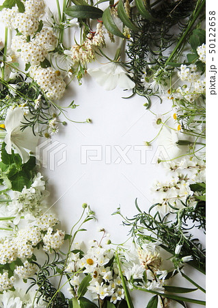 白い花とハーブの背景画像