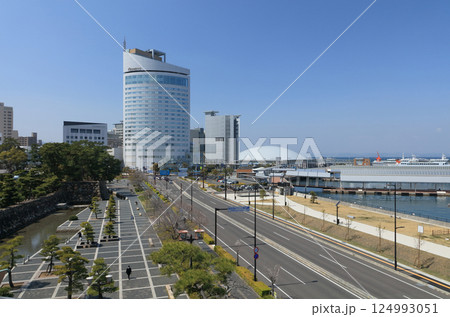 サンポート高松に「あなぶきアリーナ香川」のある高松市街地風景