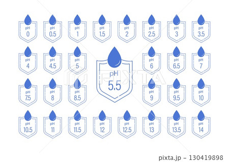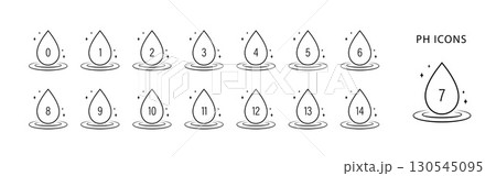Ph icon set. Outline water drop logo. Neutral balance skin. Vector illustration in flat style