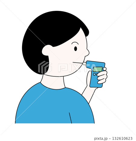 アルコール検知器を使用する人物のイラスト|飲酒運転防止・安全運転チェック