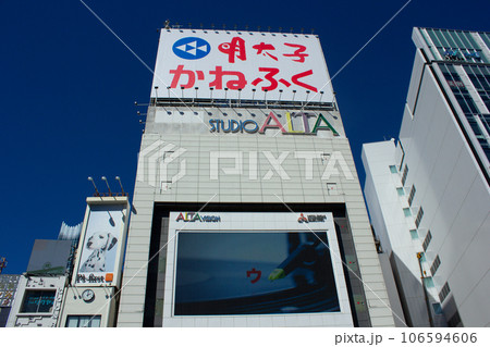 日本の東京都市景観 新宿駅東口にあるスタジオアルタなどを望む
