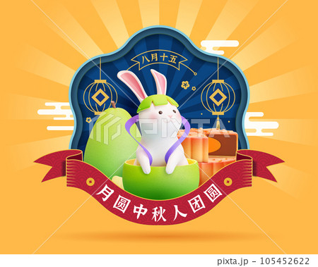 Cute jade rabbit wearing pomelo hat